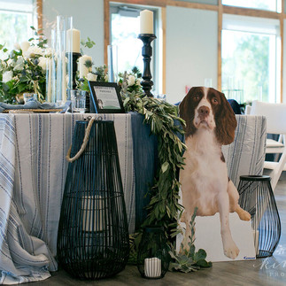 On easily one of the hottest summer days, Alysa & Bryant said ‘I do’ surrounded by their loved ones. Their rustic meets boho wedding paired beautifully with the natural outdoor elements of Buboltz Nature Preserve. We LOVE the mixed blue hues of the bridesmaids against the serene woodlands. An altar full of candles added a modern touch to the traditional church setting creating an intimate backdrop for their vows. Using a mixture of florals, printed textiles, antlers & varying candles, their reception had a soft casual elegance perfect for a summer wedding. Complete with a life-size cutout of their very own pup!